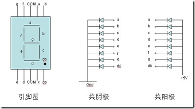 按发光二极管单元连接方式可分为共阳极数码管和共阴极数码管: