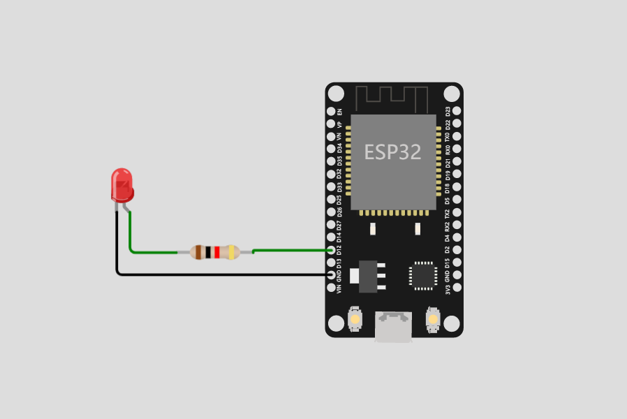 LED 的正极接开发板的 D12 引脚,并串联一个电阻,负极接 GND,如下图: